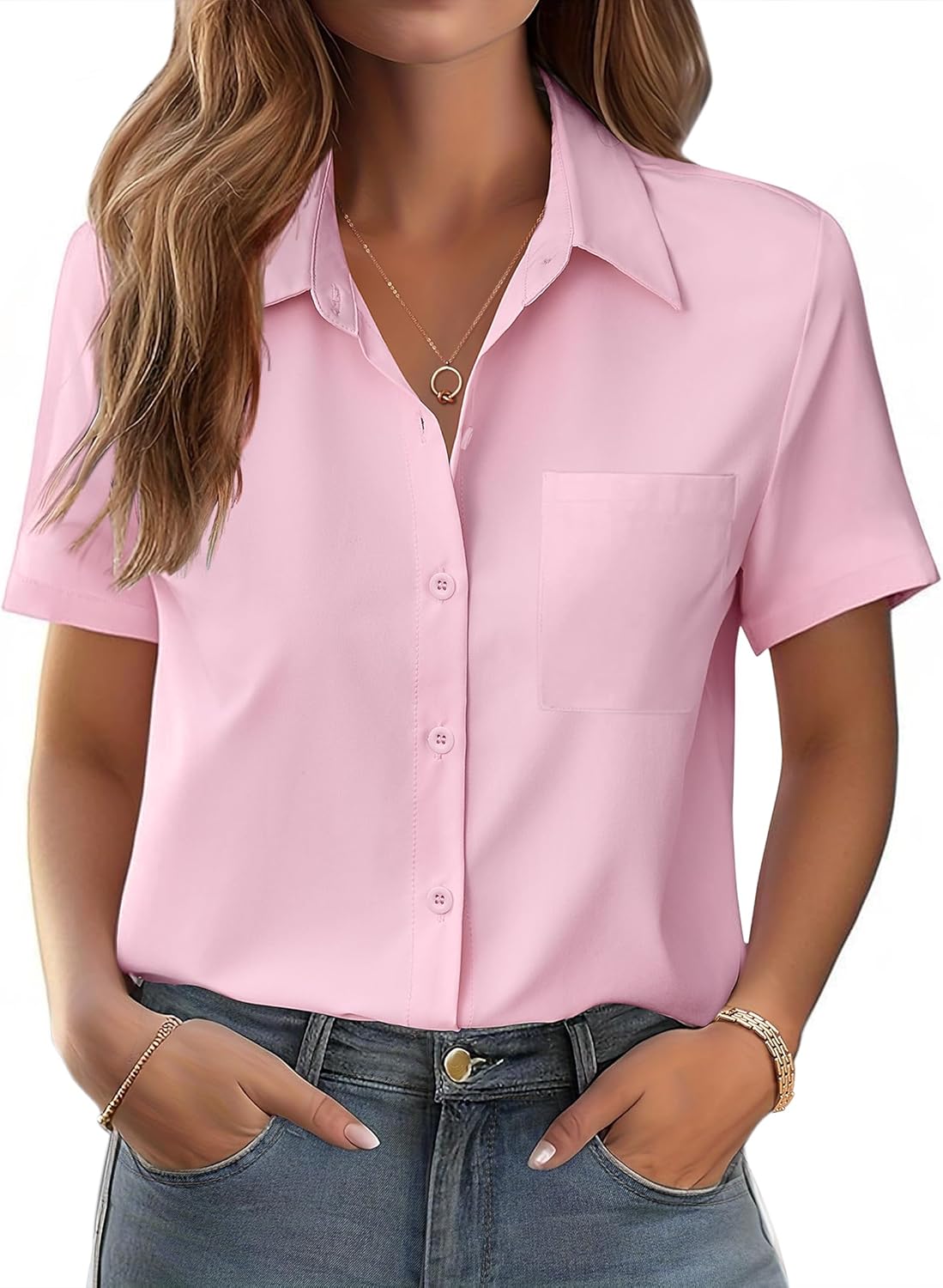 Zeagoo Womens Button Down Shirt Bust Pocket Short Sleeve Blouses Business Casual Work Tops Summer Outfits