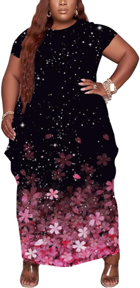 YeGine Oversize Tshirt Dress Plus Size Short Sleeve Maxi Dress with Pockets