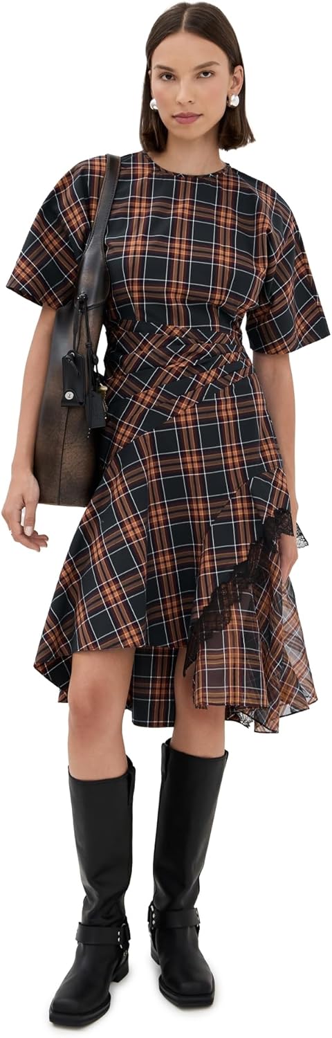 3.1 Phillip Lim Women's Short Sleeve Draped Dress with Organza Combo