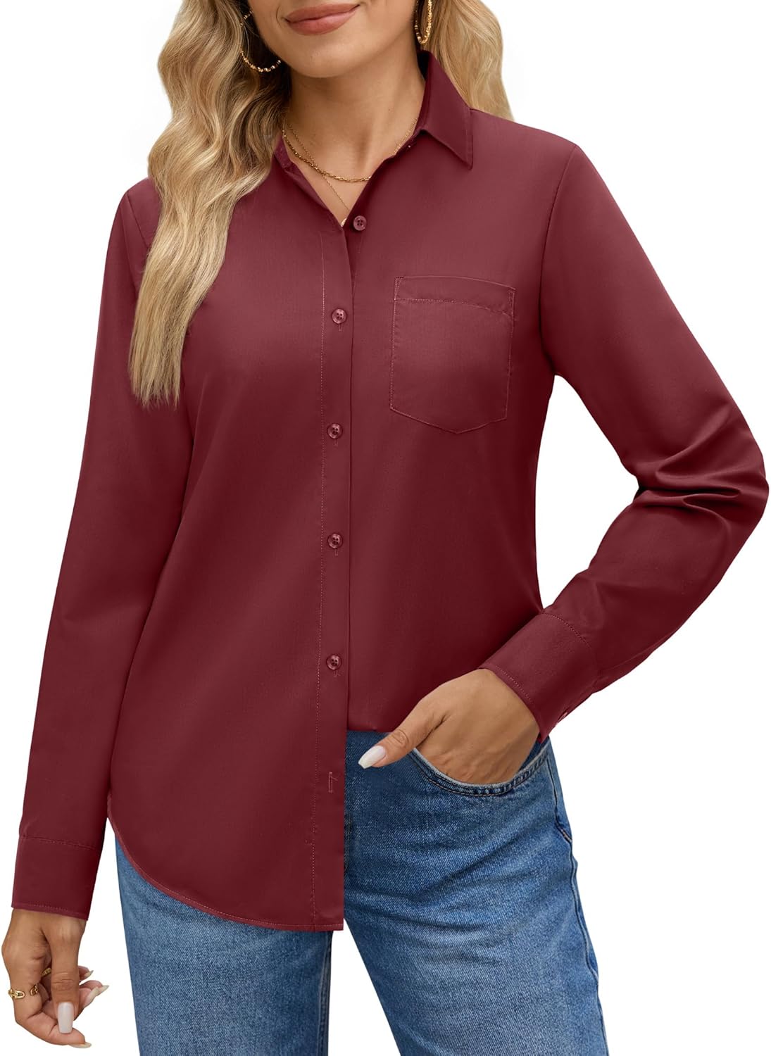 J.VER Womens Button Down Dress Shirts Long Sleeve Shirt Classic Business Casual Work Blouse Tops with Pocket