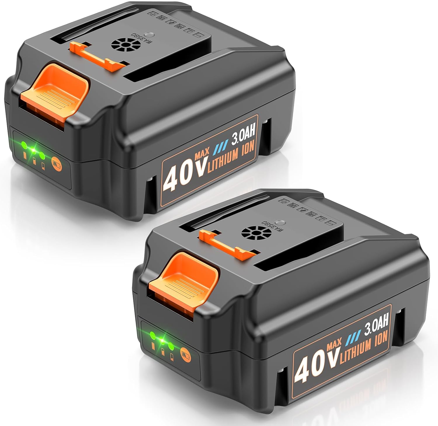 ARyee 2-Pack 40V 3.0Ah WA3580 Replacement for Worx 40V Battery Compatible with Worx 40 Volt Tools WG180 WG280 WG380 WG580 (Not Fit for 2x20V Tools)