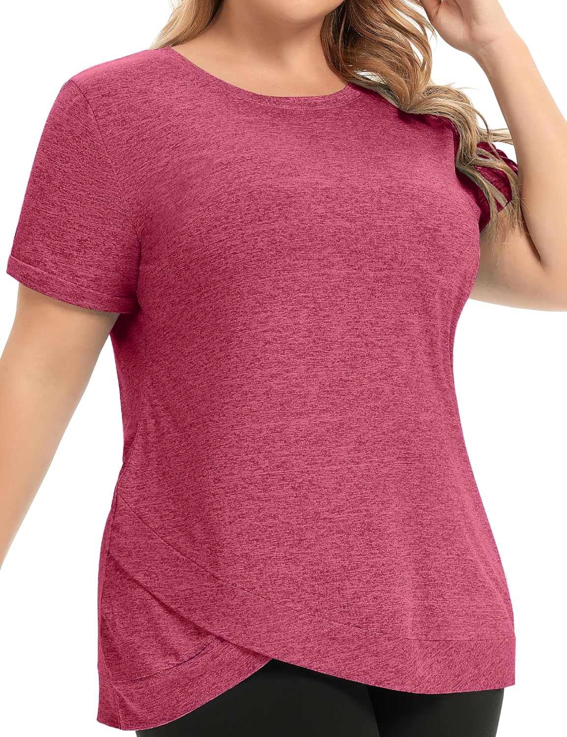 FOREYOND Women's Plus Size Workout Tops Short Sleeves Loose Fit Athletic Shirts Yoga Gym Running Clothing
