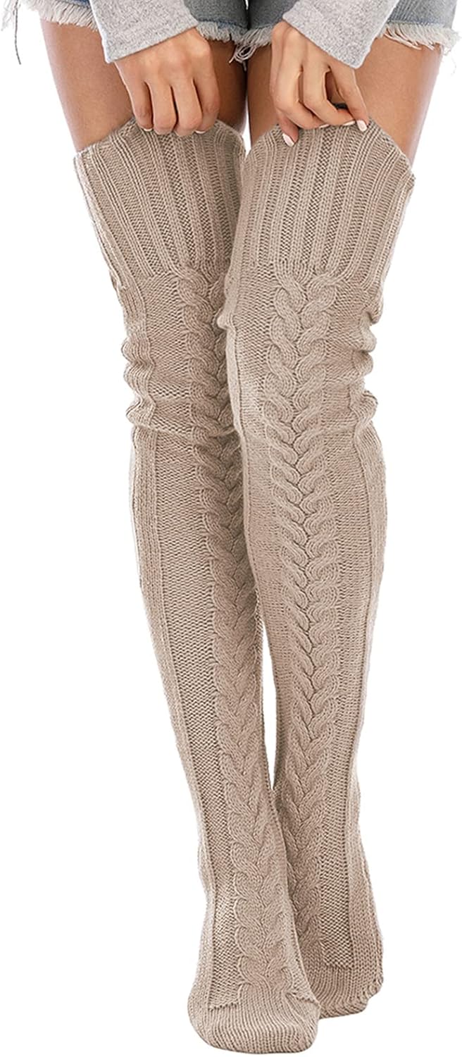 SherryDC Women's Cable Knit Thigh High Socks Winter Boot Stockings Extra Long Over Knee High Leg Warmers