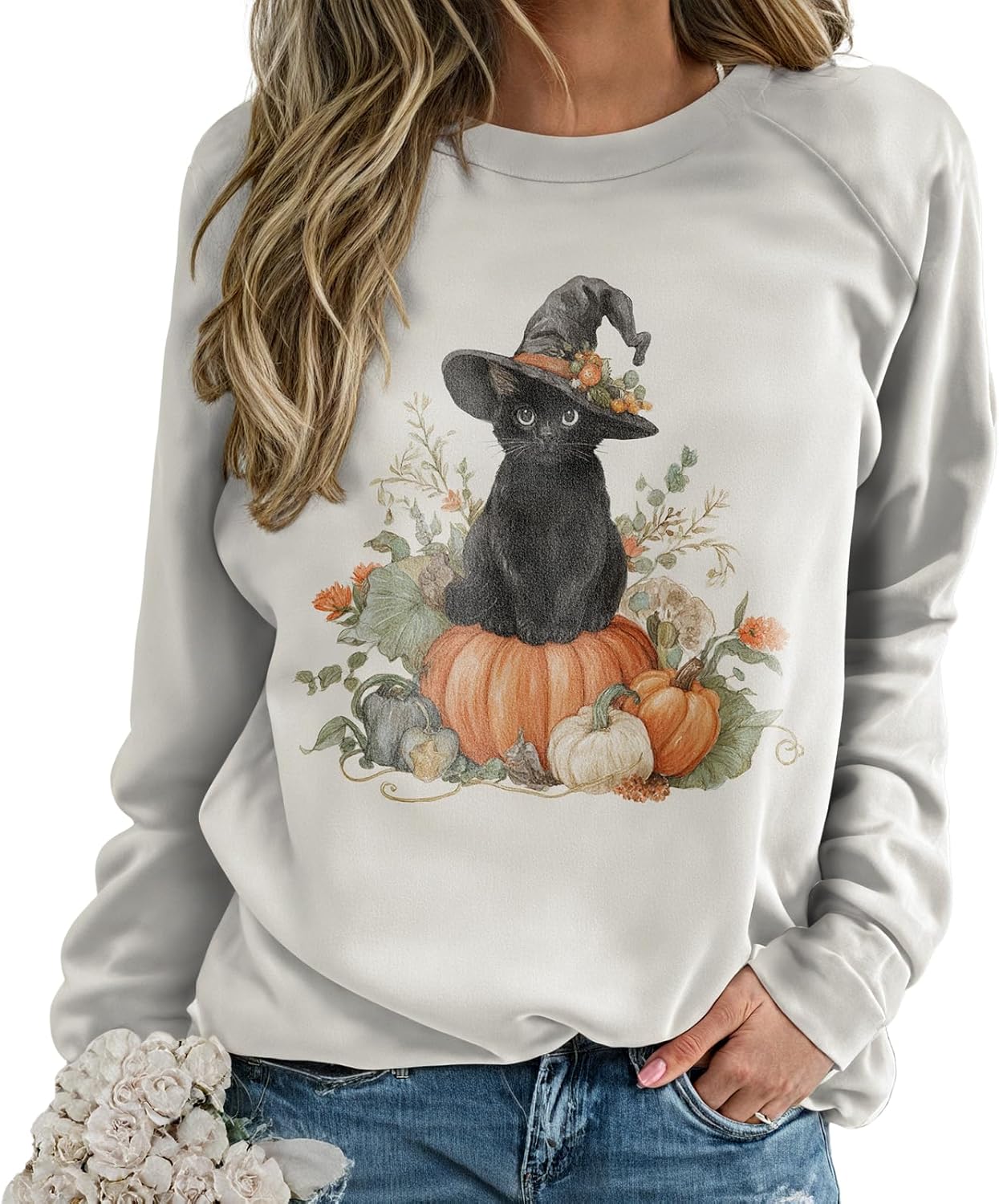MARSVOVO Fall 2025 Halloween Sweatshirts for Women Print Graphic Pullover Tops Long Sleeve Sport Comfy Trendy Casual Tops