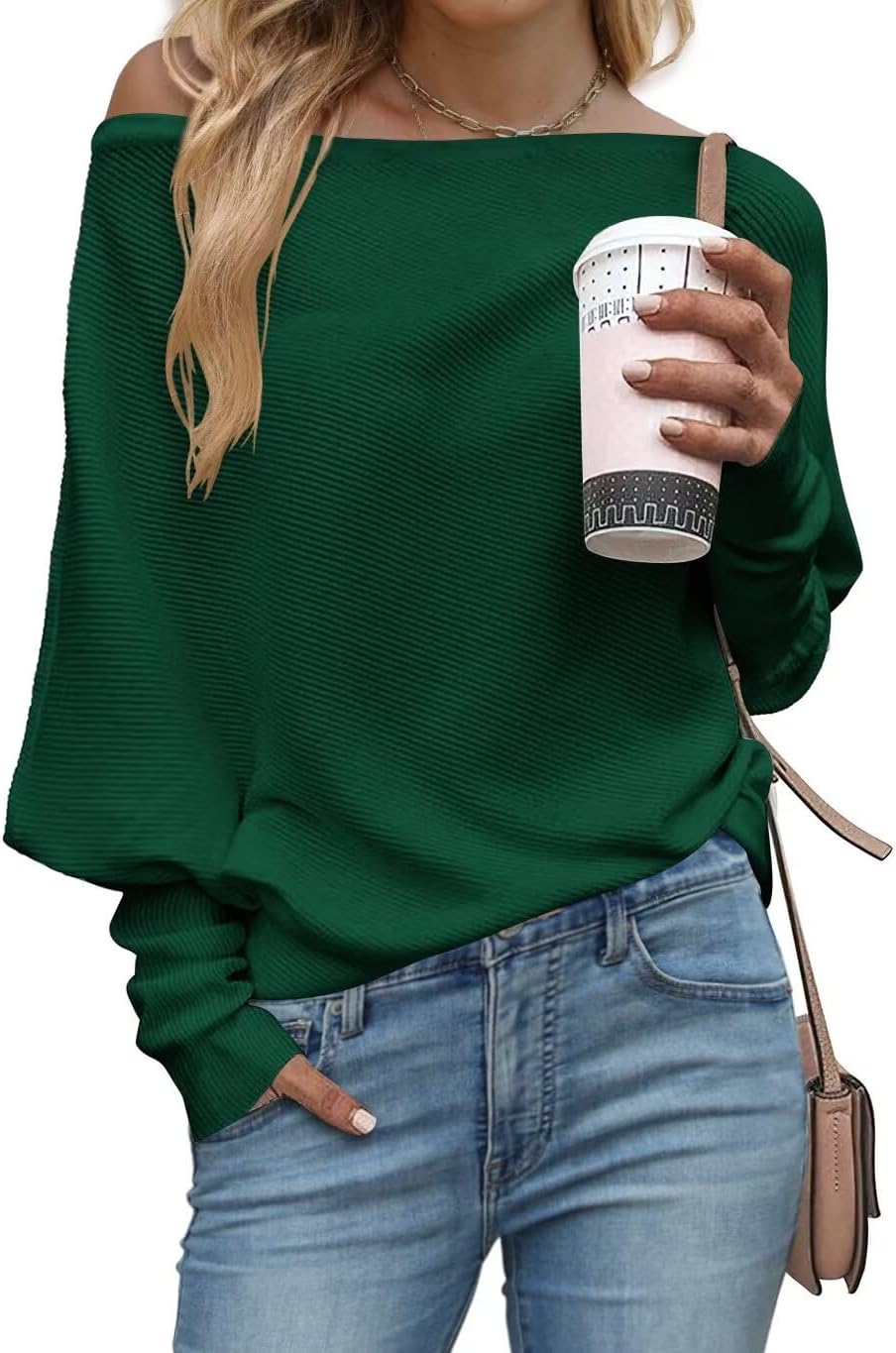 JOCAFIYE Womens Fall Winter Sweaters 2025 Casual Long Batwing Sleeve Loose Off Shoulder Knit Pullovers Jumper Tops