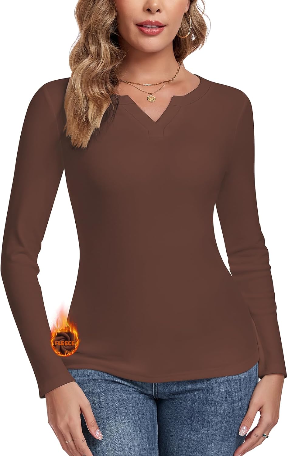 Thermal Long Sleeve Shirts for Women Fleece Top Thermal Notch V Neck Underwear Top Undershirt Winter Cold Weather