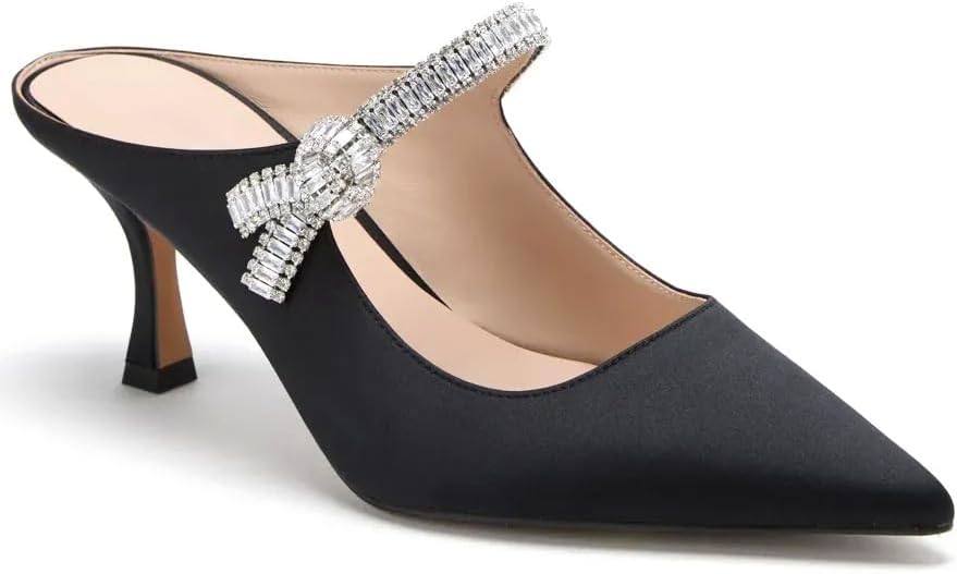Heeled Mules for Women Closed Pointed Toe Rhinestone Pumps Kitten Heels Slip on Comfortable Dressy Party Wedding