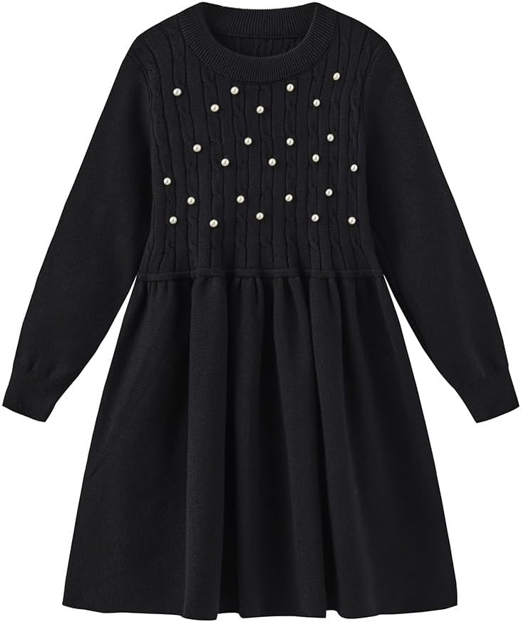 Girls Dress Sweater Long Sleeves Pearls Cable Knit Sweater Cute Winter Dresses