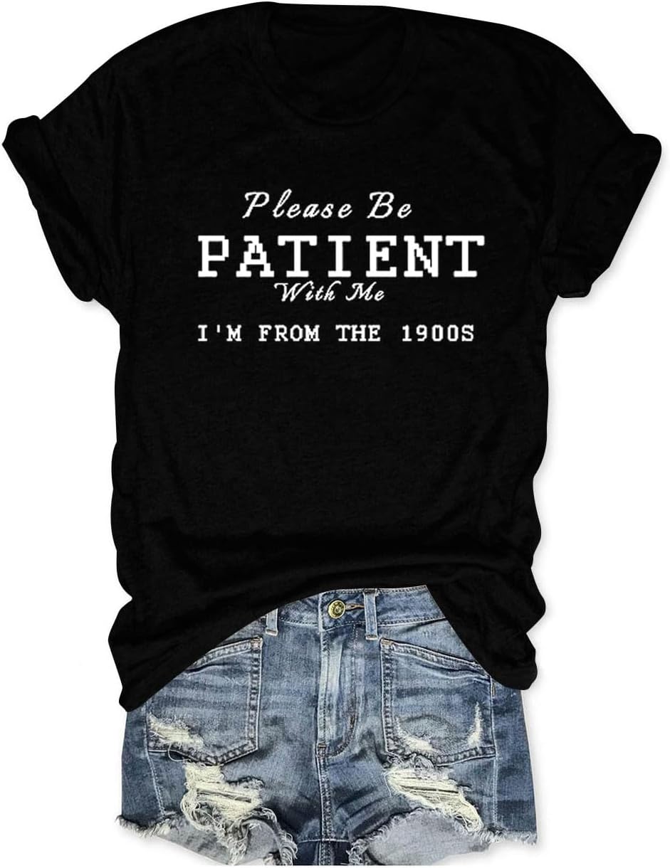 Funny Saying Shirt for Women Please Be Patient with Me I'm from The 1900s Shirts Crewneck Tees Short Sleeve Top