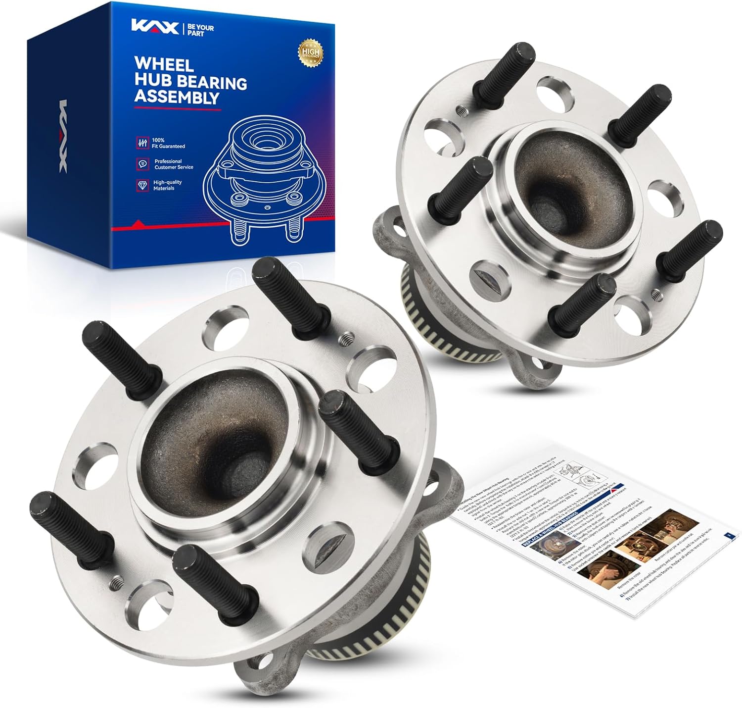 - [Premium Quality Materials]This Wheel bearing assemblies are manufactured with premium quality materials.The outer ring and flange are made of high quality #55 carbon structural steel for high surface hardness and strength;the inner ring is made of GCr79 high carbon chrome bearing steel with high and uniform hardness.