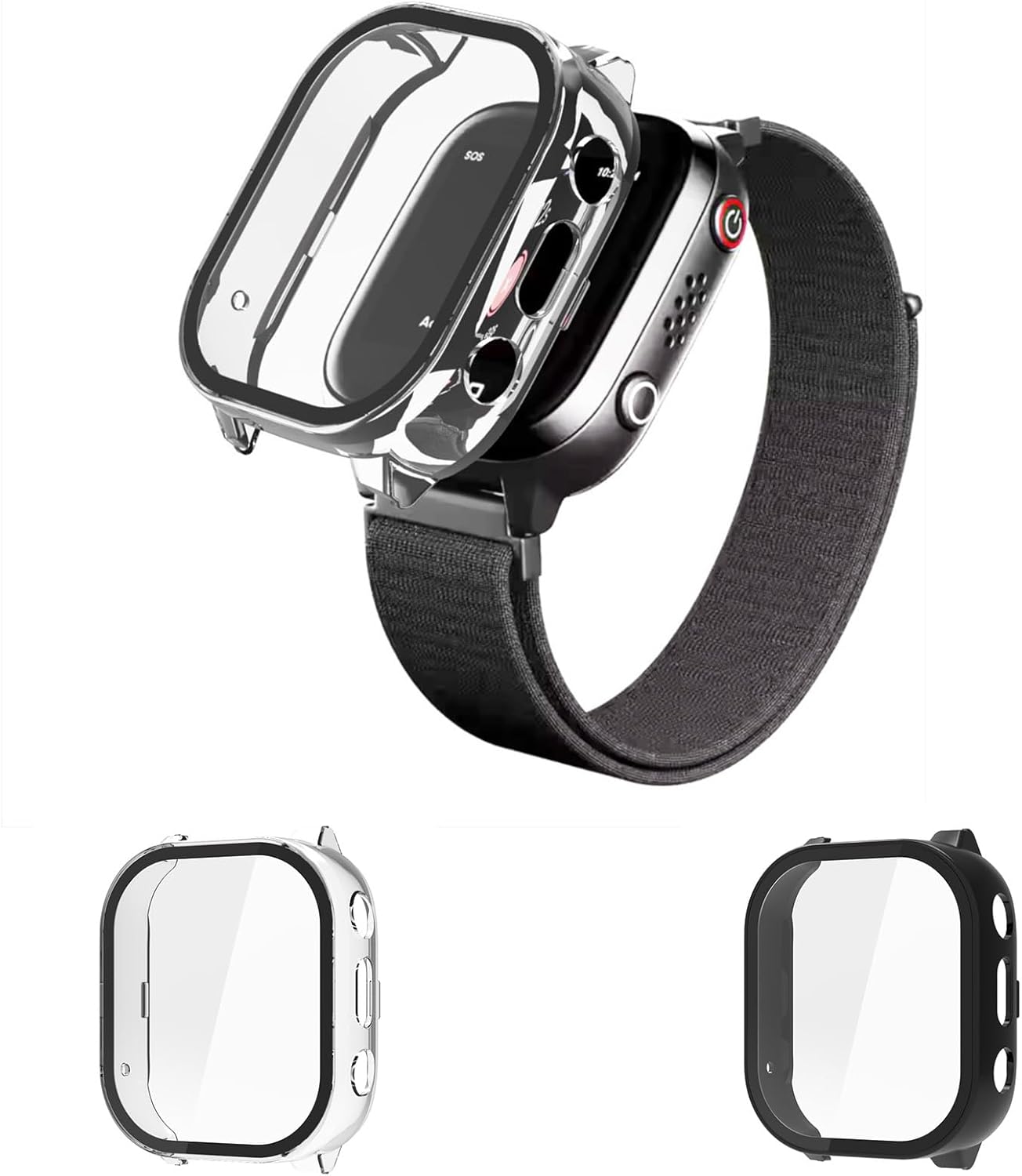 2 Pack Screen Protector Case Compatible with Cosmo JrTrack 3/4 Kids Smart Watch, Ultra-Thin Hard PC Protective Cover Slim for Kids Boys Girls, Clear+Black
