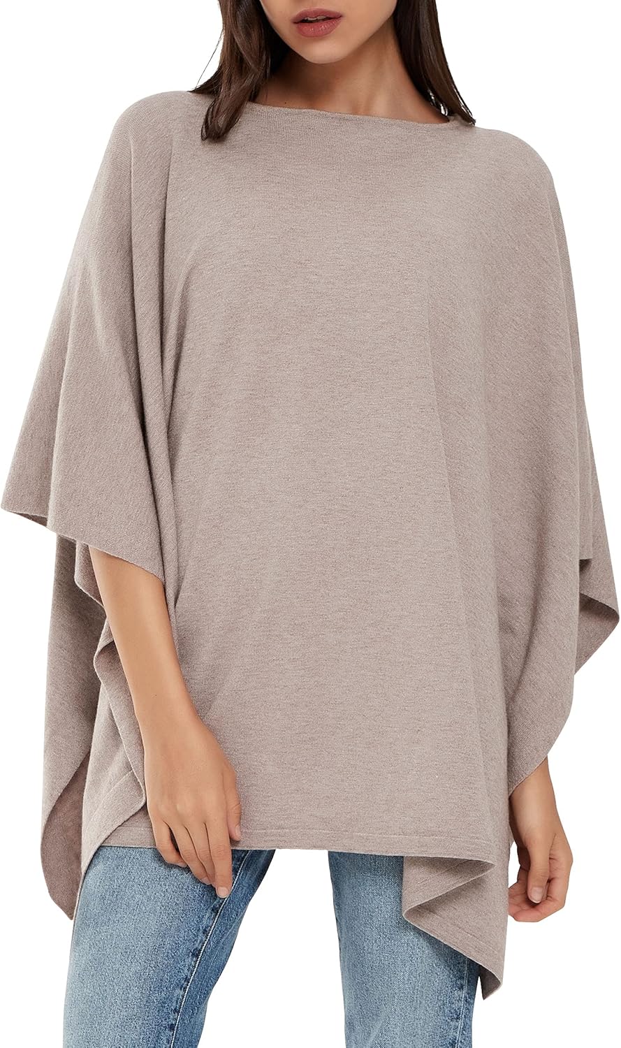 PULI Women's Pullover Poncho Sweater Oversized Loose Fit Soft Shawl Wraps Fitting Baggy Tops for Fall Winter