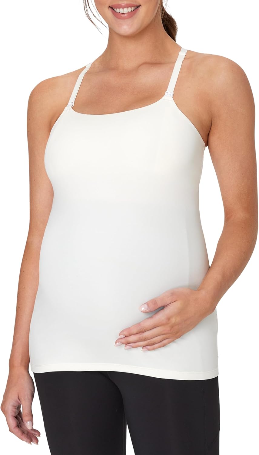 Hanes Womens Maternity Nursing Tank, Stretch & Recover Racerback Breastfeeding Tank Top with Clip-Down Straps