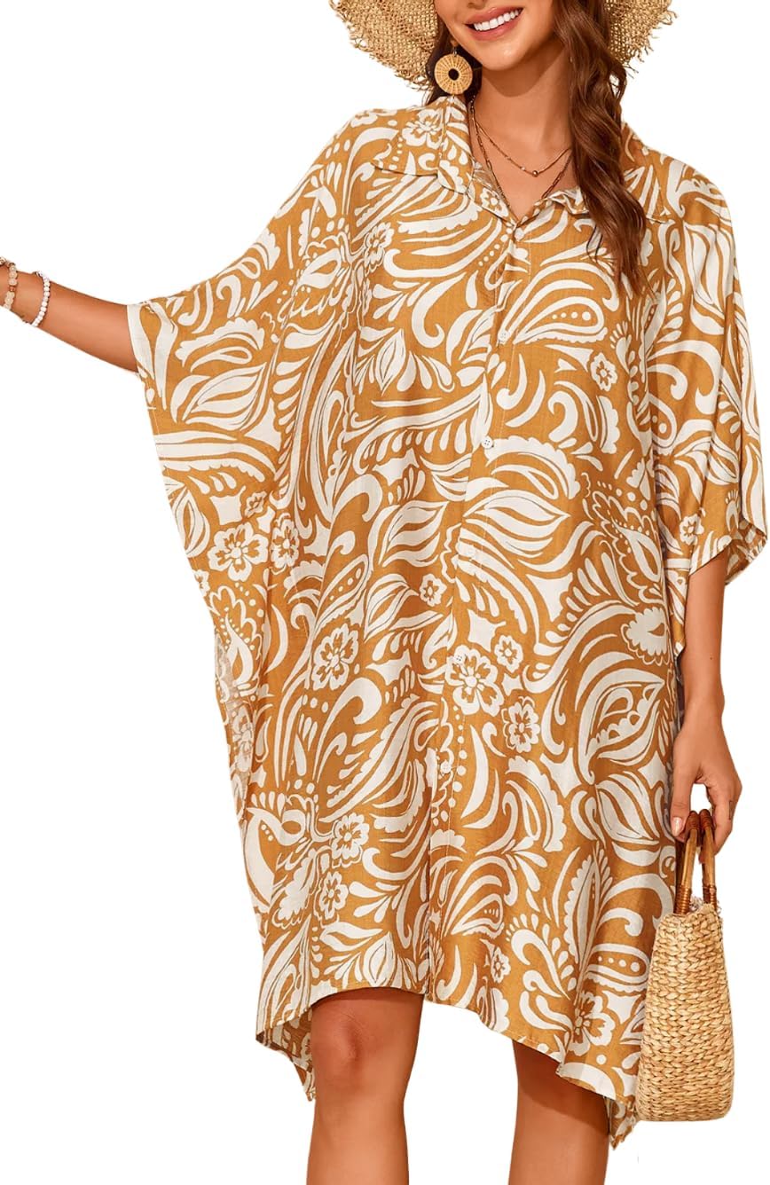 Print Cover-Up Shirt-Dress, Button-Up, Beach Cruise Wear, Fits sizes 0-14, Vacation Clothes Beachwear