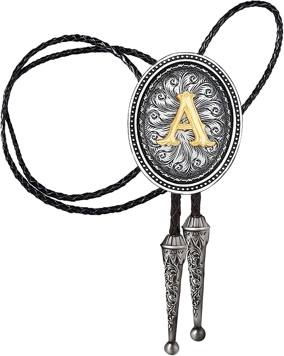 HUABOLA CALYN Bolo tie for Men, Western Cowboy Golden Alphabet Initial Letter ABCDJMR to Y Costume Bolo ties Neckties