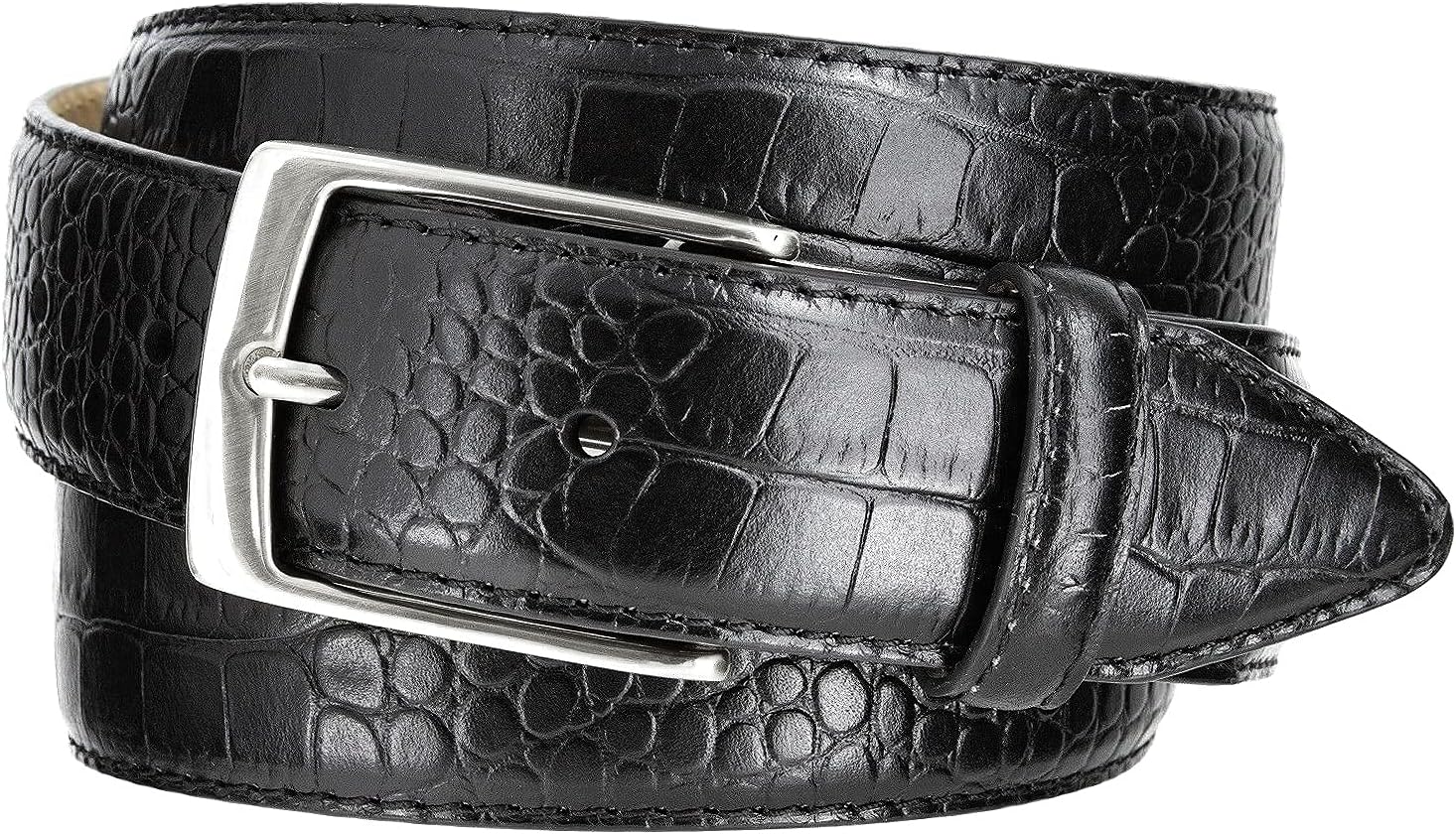 AE354 / A274 Genuine Full-Grain Cowhide Leather Dress Belt Nickel Finish Buckle 1-3/8''(35mm) Wide, 1"(25mm) Wide