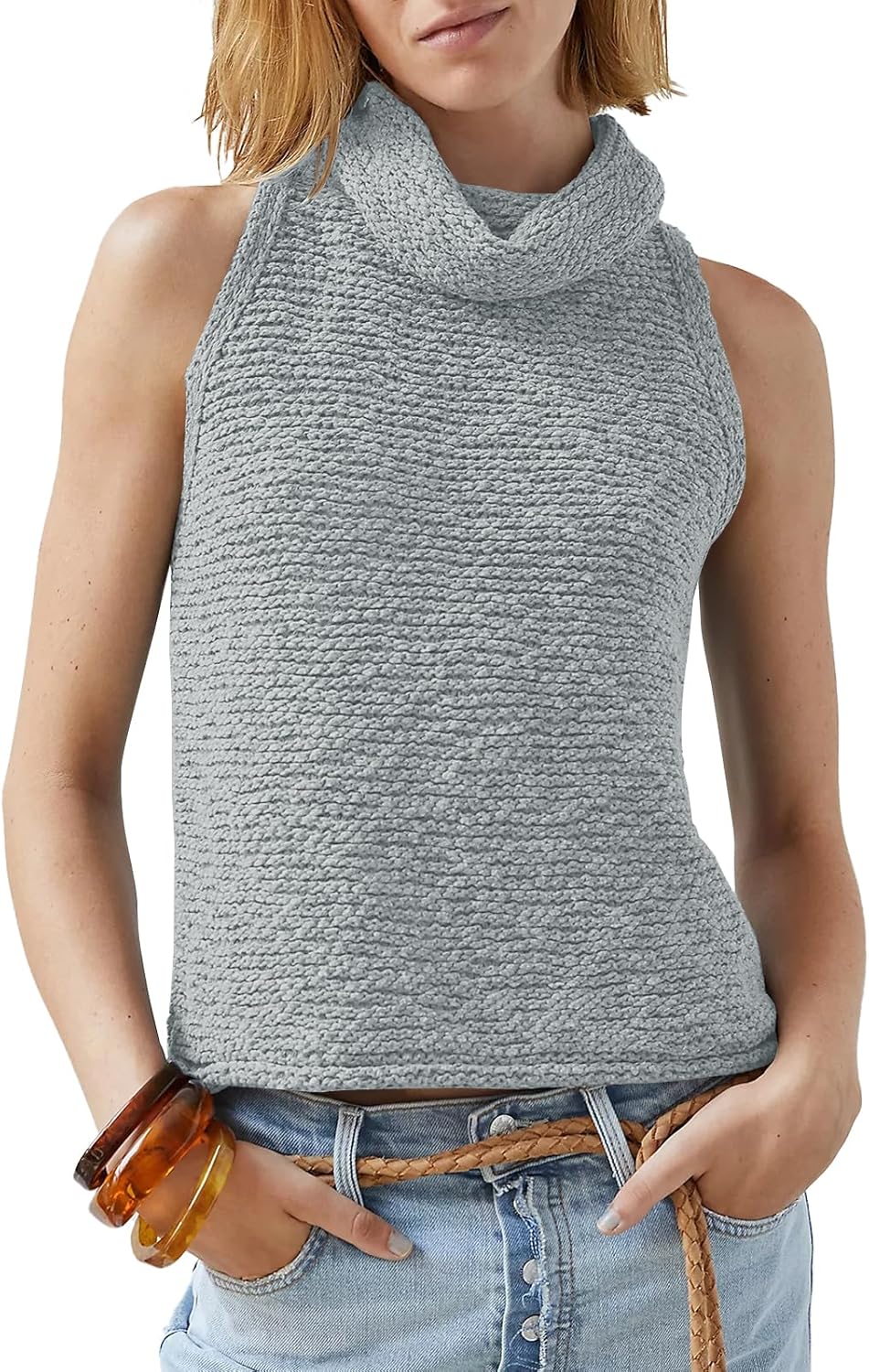 Imily Bela Womens Turtleneck Sweater Vest Sleeveless Loose Pullover Sweaters Knit Fashion Tank Tops