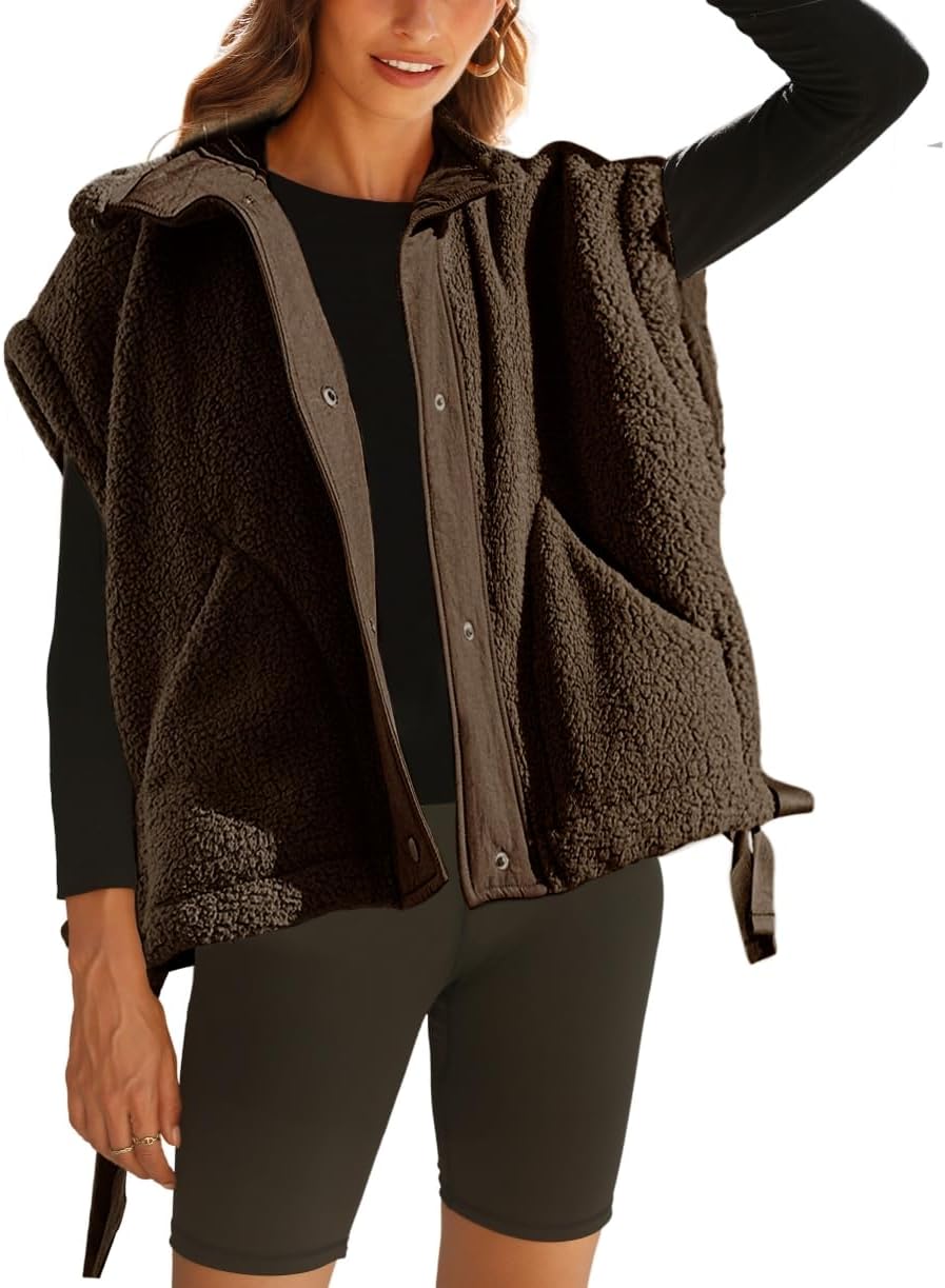 Sherpa Vest Women Oversized Sleeveless Fleece Fuzzy Jacket Winter Zip Up Gilet Outerwear with Pockets