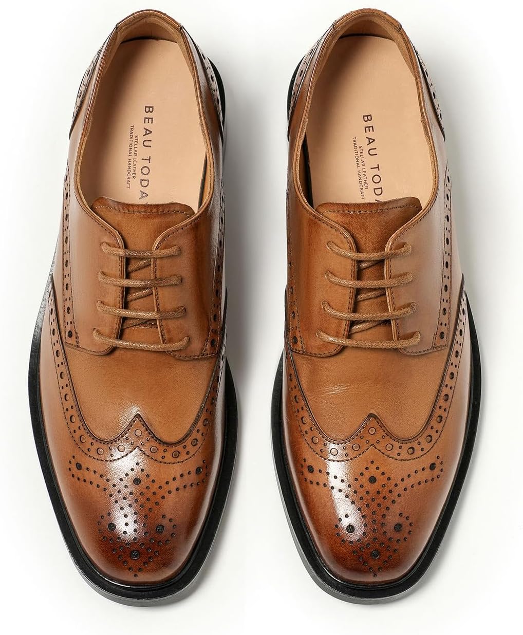 BEAU TODAY Oxford Shoes for Women,Leather Wingtip Dress Shoes,Comfort Brethable Ladies Lace-up Handmade Brogue Formal Oxfords for Business Work