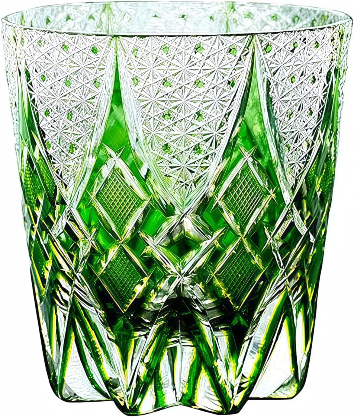 JEKE Edo style Hand Carved Drinking Glass Crystal Whisky Glass 340ml Tumbler For Whiskey Cocktail-Vodka-Beer Drinkingware Glasses In Gift Carton (Green)