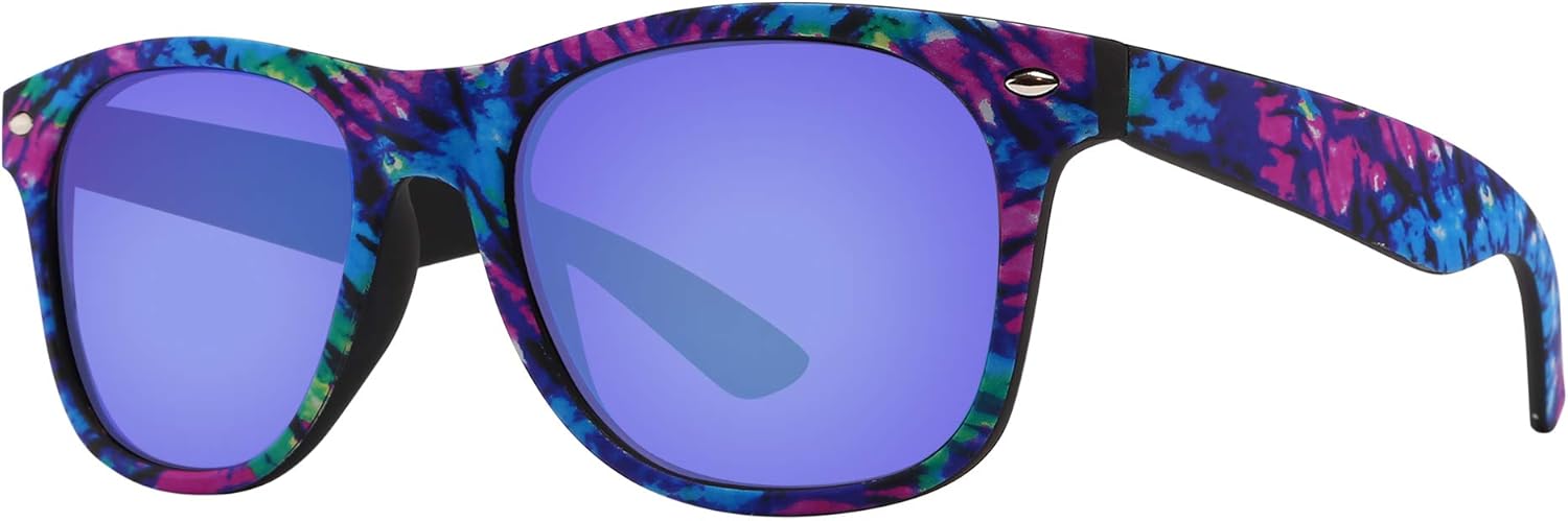 Piranha Digital Unisex Retro Sunglasses with Purple Pattern Frames and Blue Mirror Lens