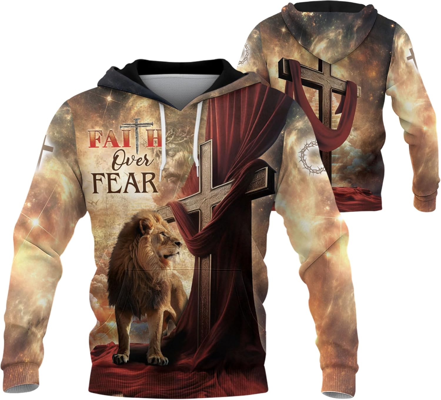 Faith Over Fear Hoodie, Christian Hoodies For Men, Cross Hoodie, Religious Hoodies For Men 1
