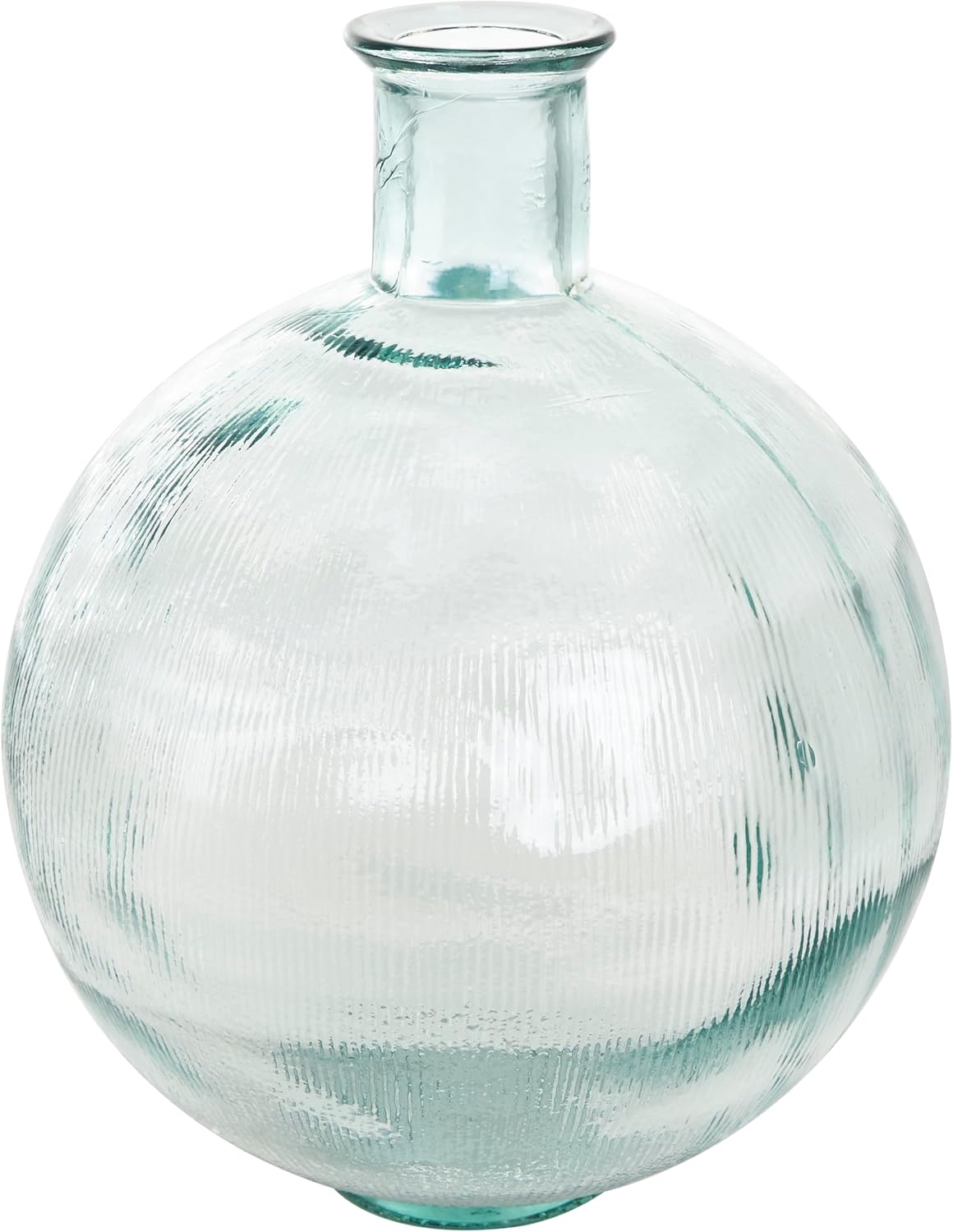 Deco 79 Recycled Glass Handmade Decorative Vase Ribbed Spanish Bottle Centerpiece Vase, Flower Vase for Home Decoration 13" x 13" x 17", Clear