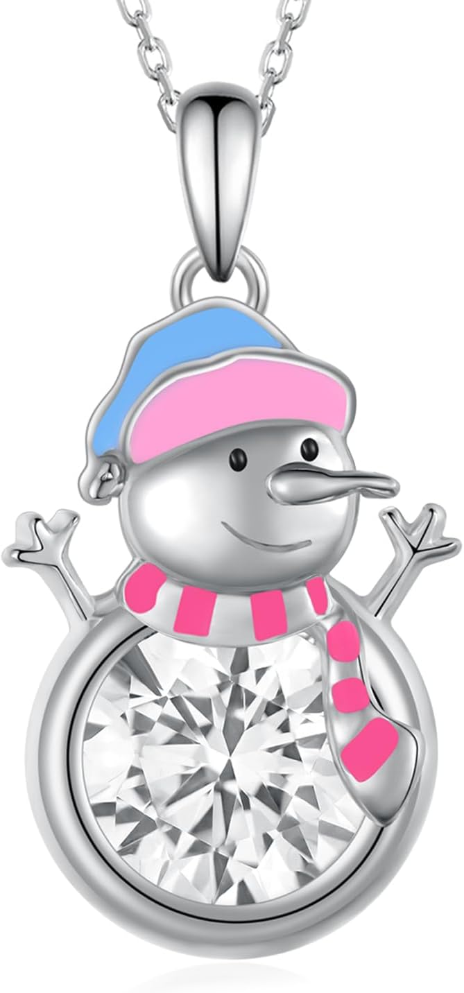 Snowman Necklace Sterling Silver Christmas Snowman Pendant Necklace Winter Holiday Xmas Jewelry Birthday Gifts for Women