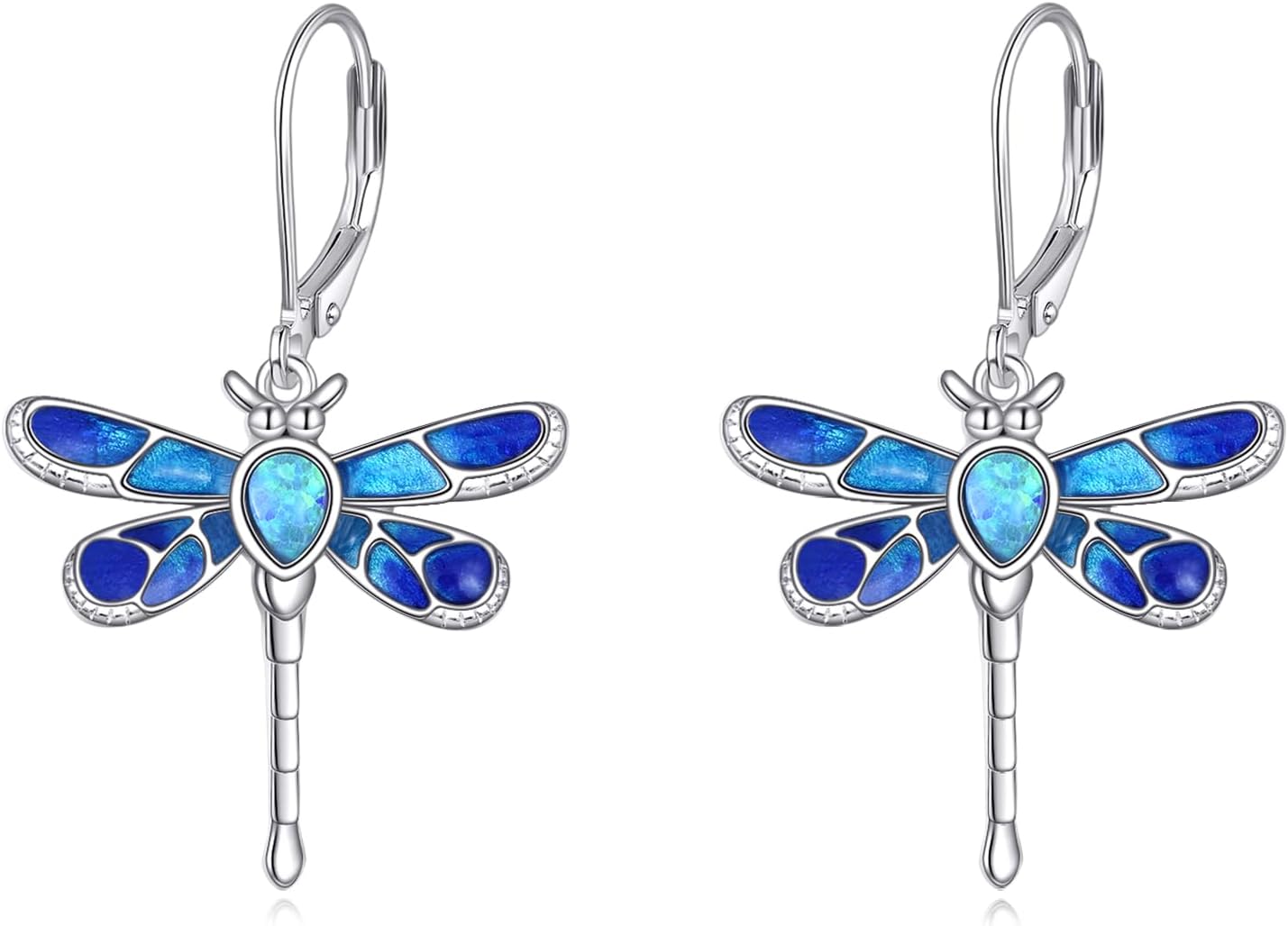 Dragonfly Earrings 925 Sterling Silver Dragonfly Leverback Dangle Drop Earrings Opal Dragonfly Jewelry Gifts for Women
