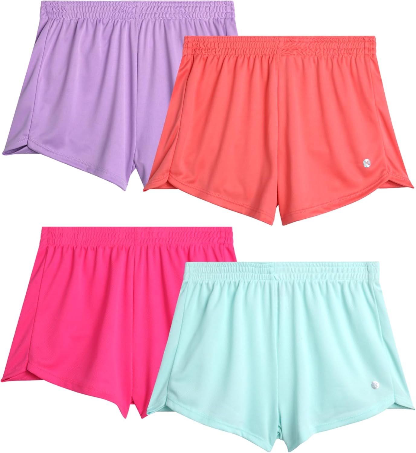 RBX Girls Athletic Shorts - 4 Pack Double Mesh Active Dolphin Shorts Running Gym Basketball Work Out Youth Kids Activewear
