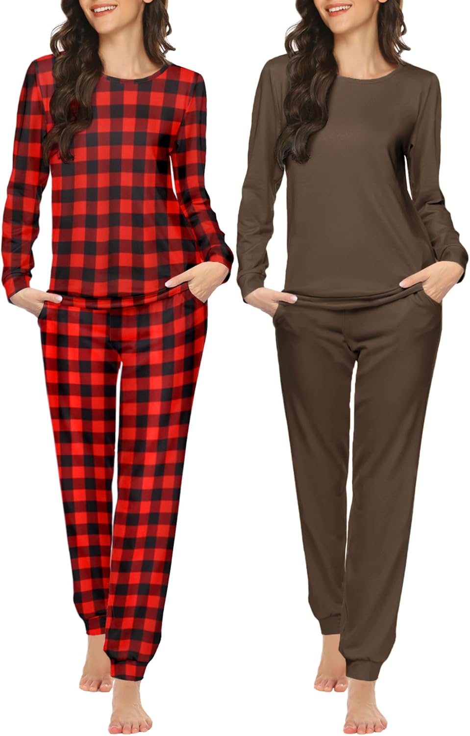 Ekouaer 2 Pack Pajama Sets for Women,Long Sleeve Top With Jogger Pants Lounge Set Sleepwear with Pockets