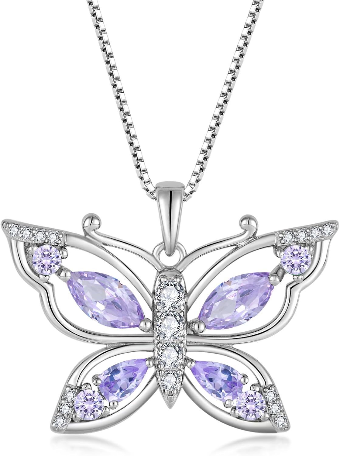 Women's Butterfly Birthstone Pendant Necklace 925 Sterling Silver 5A Cubic Zirconia Jewelry for Mother's Day Valentine Birthday Gifts for Her