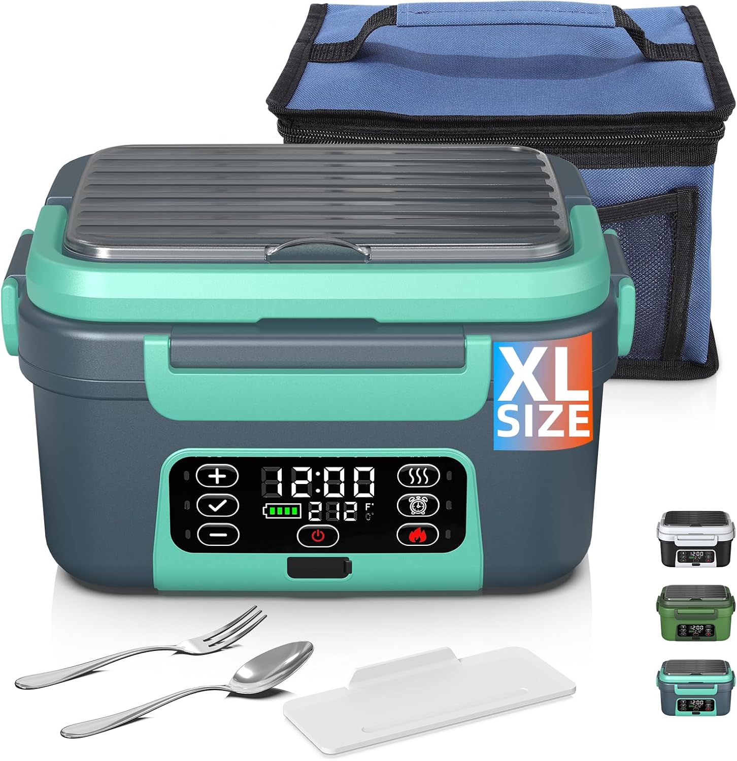 - Cordless Rechargeable Battery-Powered: The portable electric lunch box warmer with a 20,000mAh 100W battery, Ultra-Long Battery Life, charge once, can be charged multiple times. This is ideal for whether at work, in the car or outdoor settings, because it enables food automatically heating without electrical sockets.