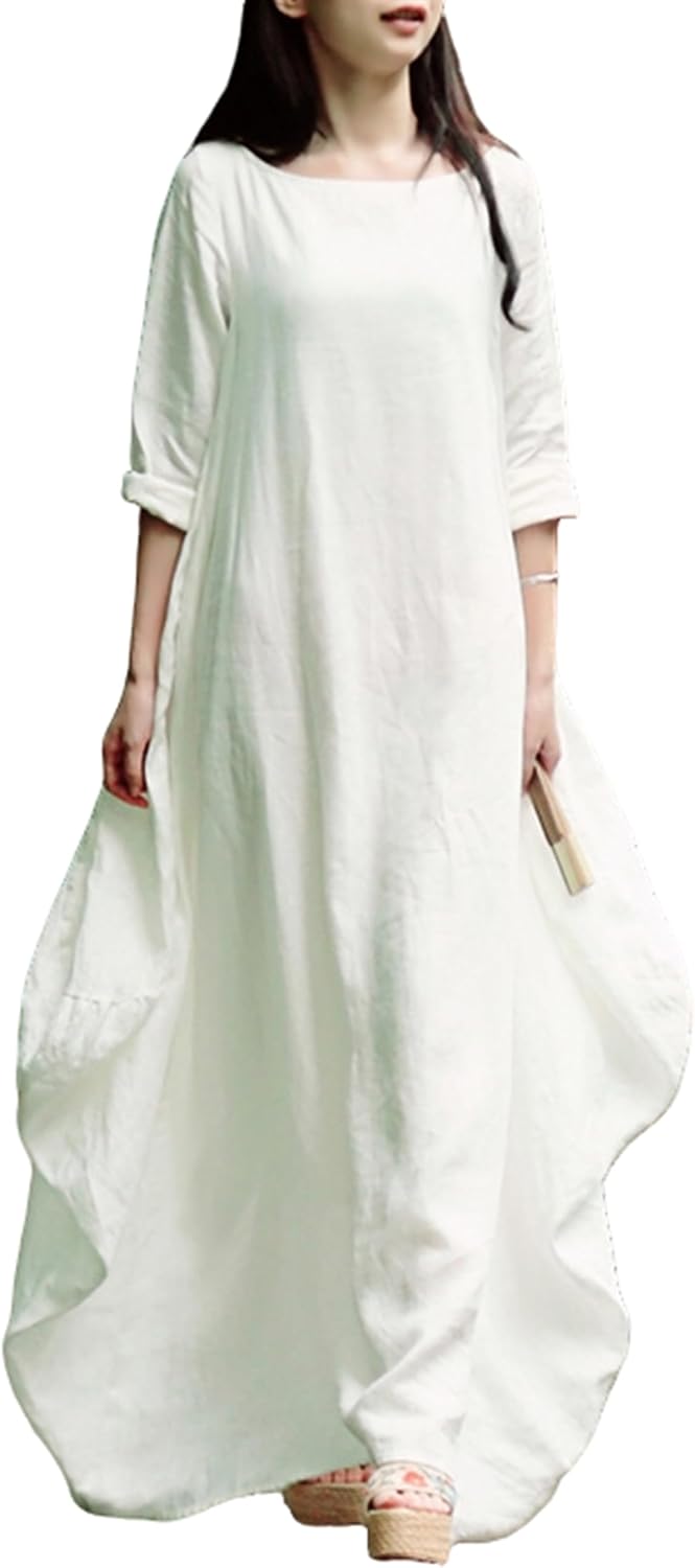 Women's 2025 Spring 100% Linen Long Dress with Long Sleeve Maxi Dress Casual Loose Fitin Solid Color Pockets