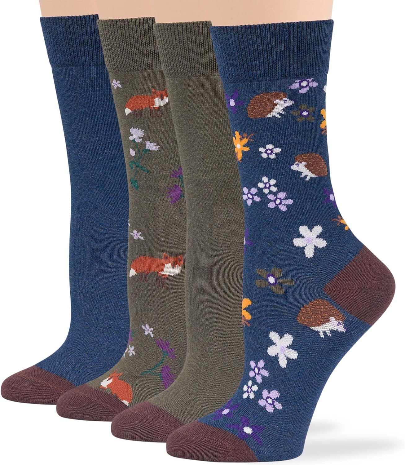 7BigStars Women Crew Socks - Fun Cotton Socks for Women, Colorful and Cute Designs, 4 Pairs Breathable Casual Dress Socks