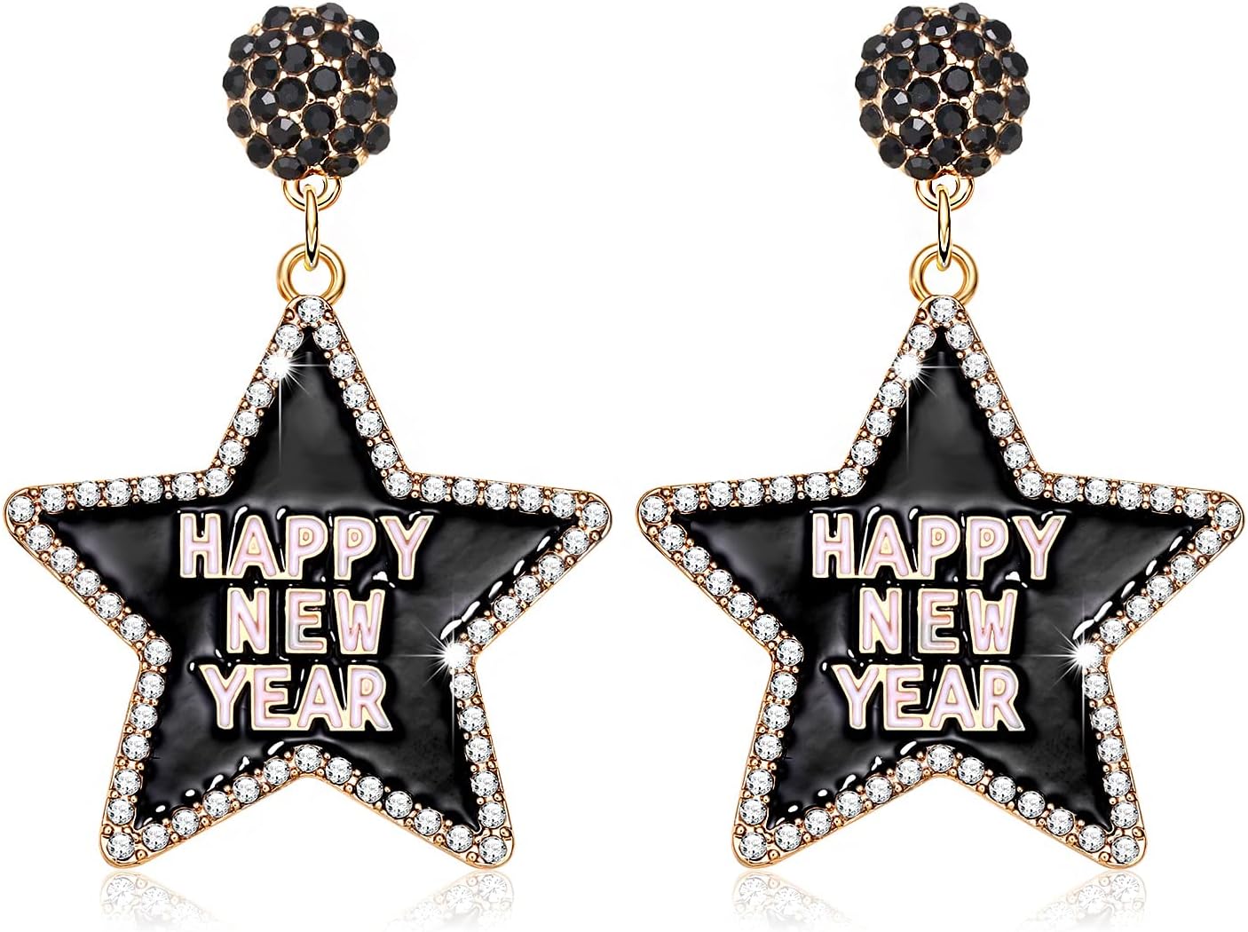 Happy New Year Earring for Women Glitter Rhinestone Star Dangle Earrings Holiday New Year’s Eve Earrings Festive Party Jewelry Gifts