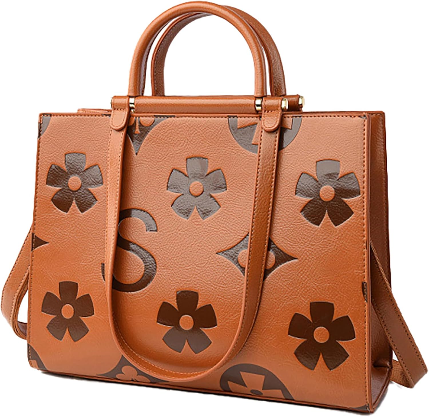 Vegan Leather Tote Bag for Women, Floral Embossed Large Bucket Purse, Elegant Casual Handbag with Adjustable Crossbody Strap and Top Handle for Work, Travel, Daily Use