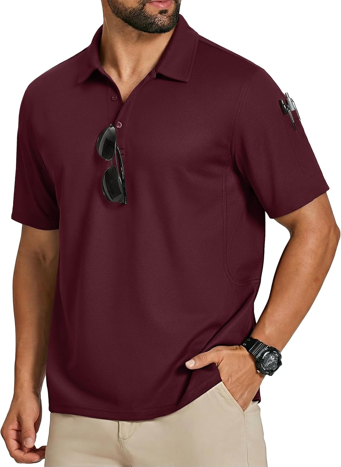 COOFANDY Men's Polo Shirts Short Sleeve Quick Dry Performance Golf Polos Tactical Work Shirts with Pen Pocket