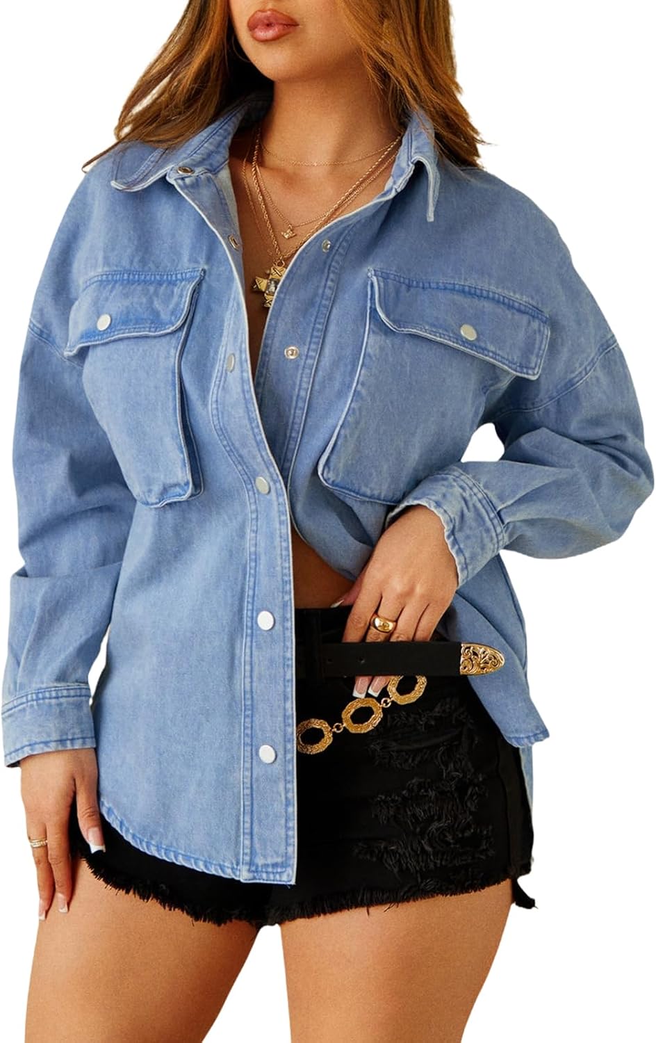 TodTan Women Denim Jacket Shacket - Casual Long Sleeve Denim Shirts Oversize Boyfriend Jean Jackets Shirt Spring Fall Outfits