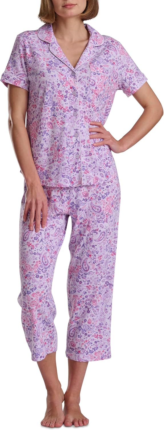 Karen Neuburger Women's Girlfriend Short Sleeve Notch Collar Button Up Top and Capri Pant Bottom 2-Piece Pajama Set