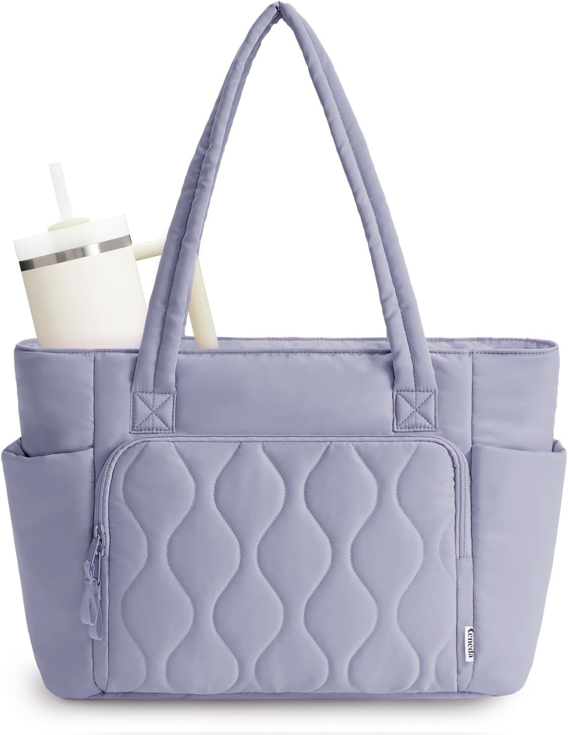Ceneda Tote Bag for Women With 40oz Cup Holder, Puffer Work Laptop Tote Bag With Zipper for Travel, Teacher, Nurse