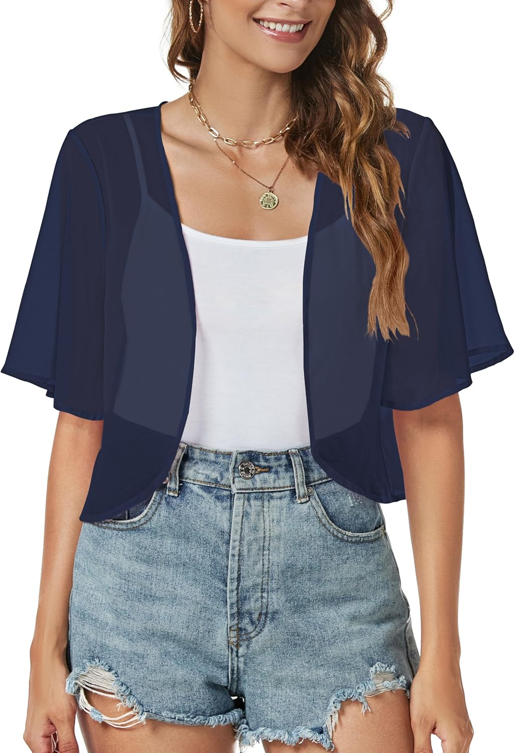 Women Shrug Chiffon Cardigans Open Front Short Sleeve Bolero for Evening Dressy
