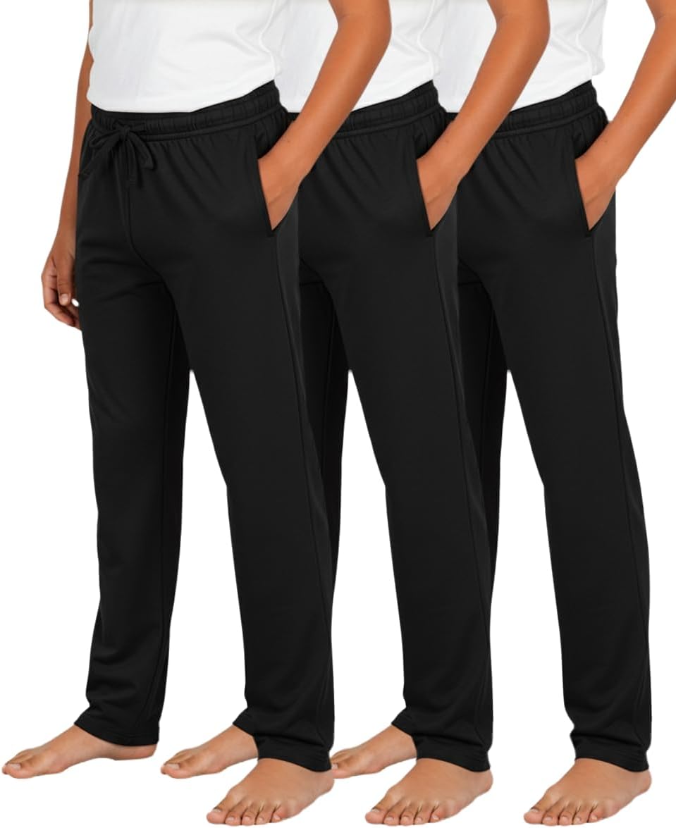 Real Essentials 3 Pack: Boys' Soft Pajama Pants - Sleepwear Lounge Bottoms for Kids Teens Youth with Pockets