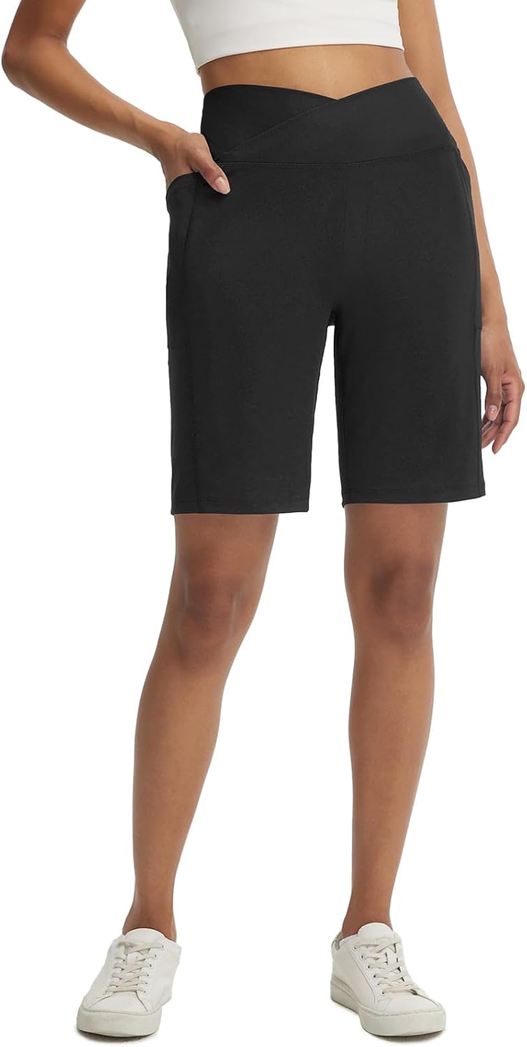 BALEAF Women's Bermuda Long Shorts with Pockets 9" Above Knee Length High Waisted Stretch Walking Athletic Dressy Casual