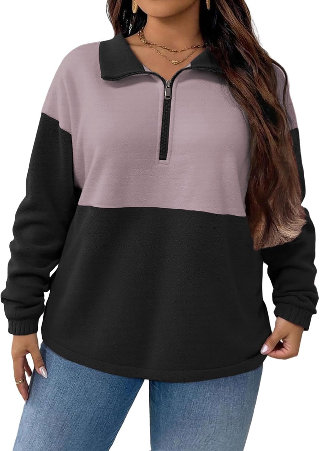 ROSRISS Plus-Size-Sweatshirts-for-Women Oversized Long Sleeve Color Block Shirts Warm Half Zip Polar Fleece Pullover Tops