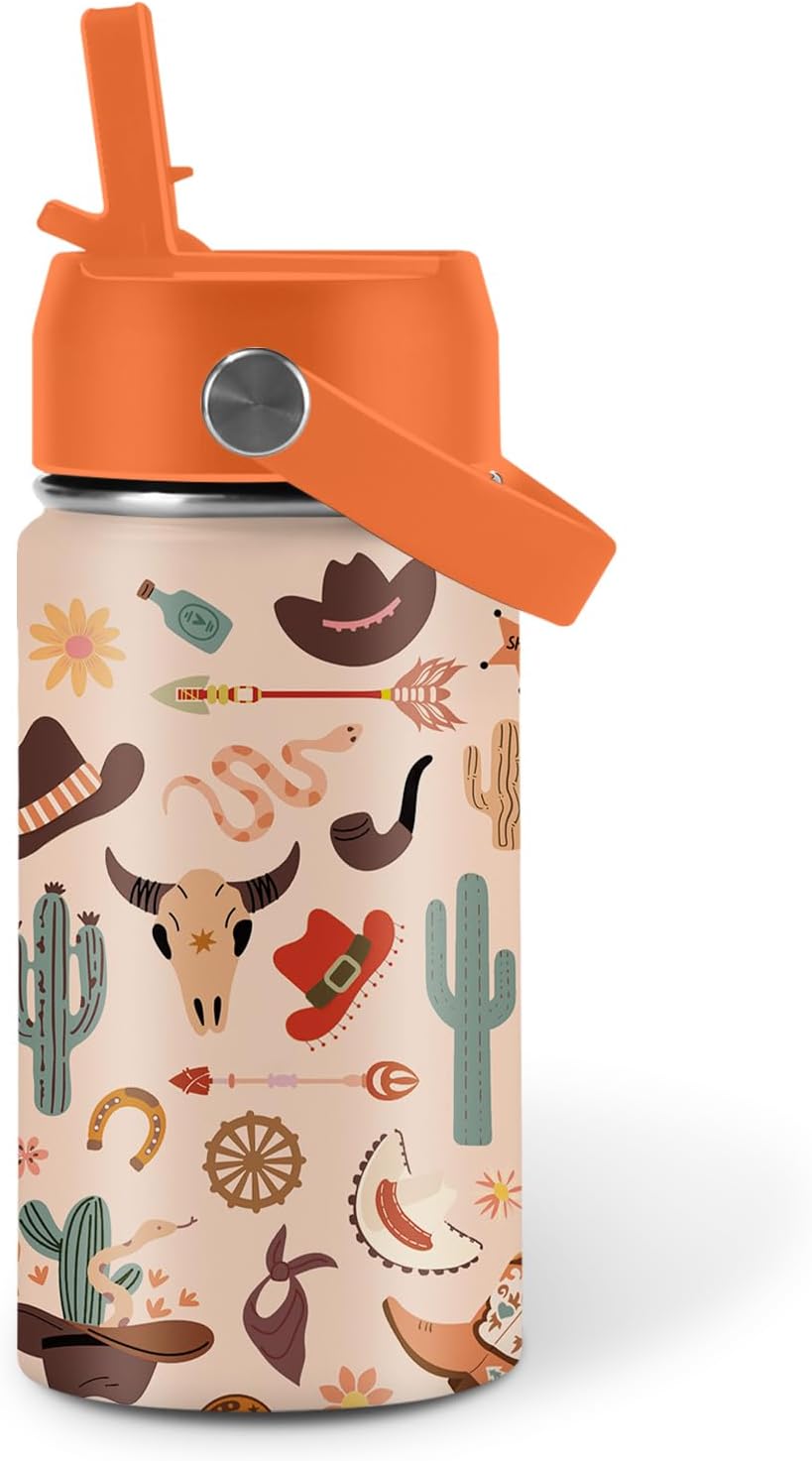 Western Cowgirl Water Bottle for Son & Daughter, Stainless Steel Insulated Tumbler for Home with with straw lid and handle, 12oz Reusable Leak-proof Bottle for Sports