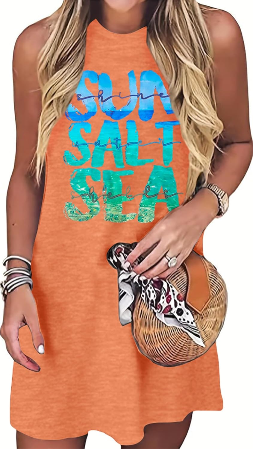 Sun Salt Sea Summer Tank Dress for Women 2025 Beach Dresses Vacation Graphic Dress Hawaiian Tank Dresses