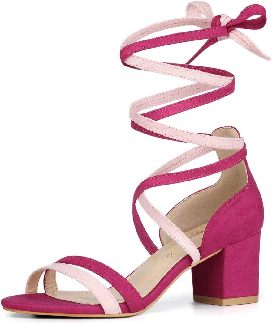 Allegra K Women's Open Toe Color Block Heel Lace Up Sandals