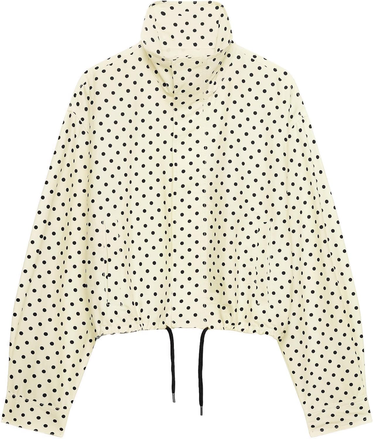 Women Polka Dot Jacket Stand Collar Cropped Jackets Zip Up Coat Casual Fashion Coat Fall Spring Jacket with Pockets