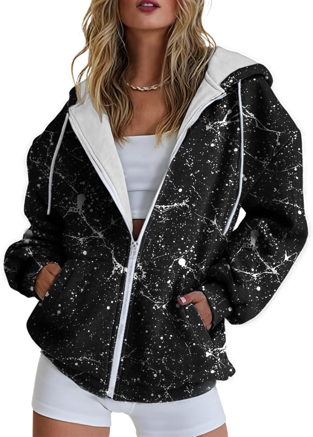 Hoodies for Women Zip Up Long Sleeve Hoodied Sweatshirt with Pockets Retro Graphic Women's Sweatshirt Trendy